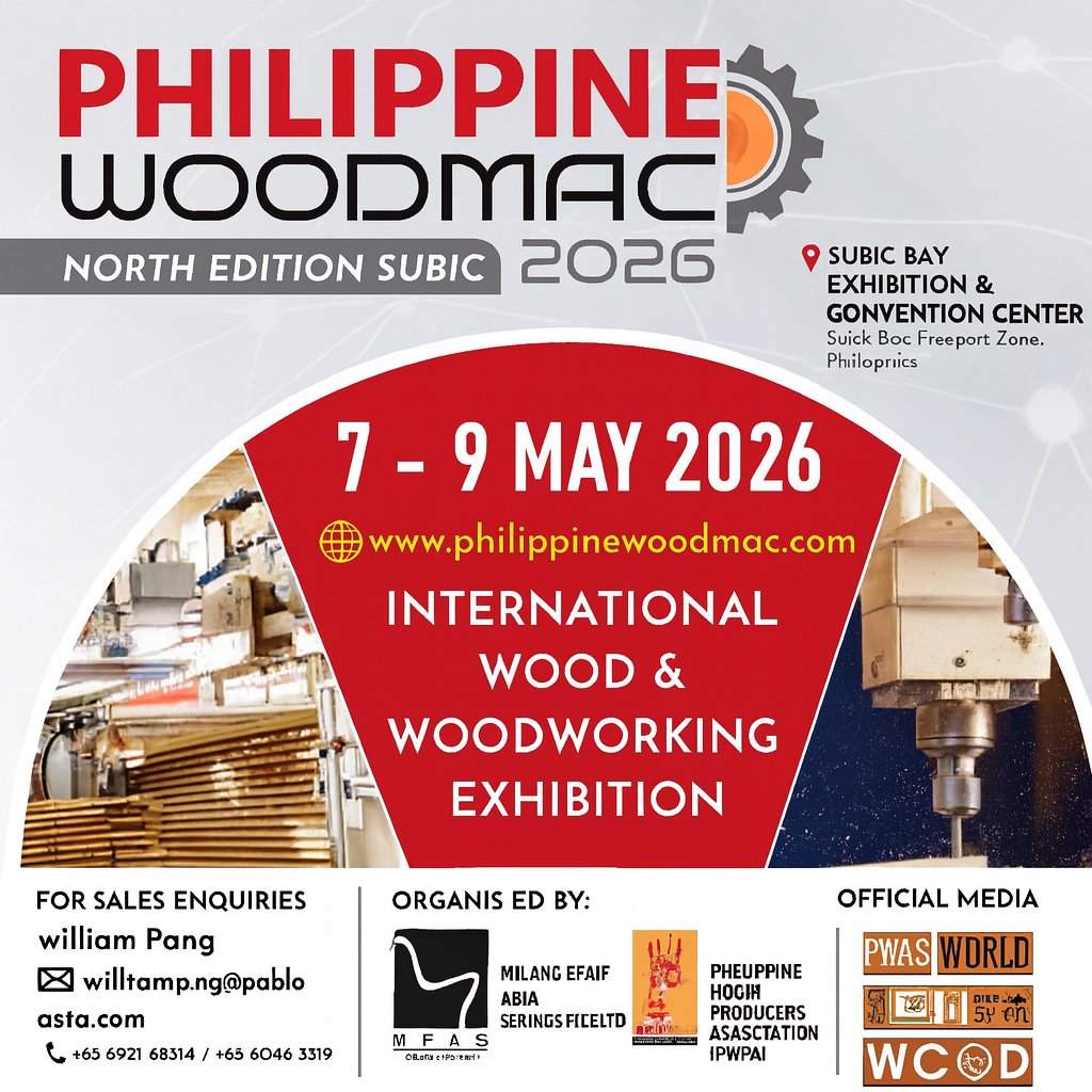 Philippine Woodmac will take place from 7 to 9 May 2026 at the Subic Bay Exhibition and Convention Centre, alongside the Philippine Wood Expo. The event is co-organised by the Chamber of Furniture Industries of the Philippines (CFIP) and Pablo Publishing & Exhibition, in partnership with the Philippine Wood Producers Association (PWPA).
